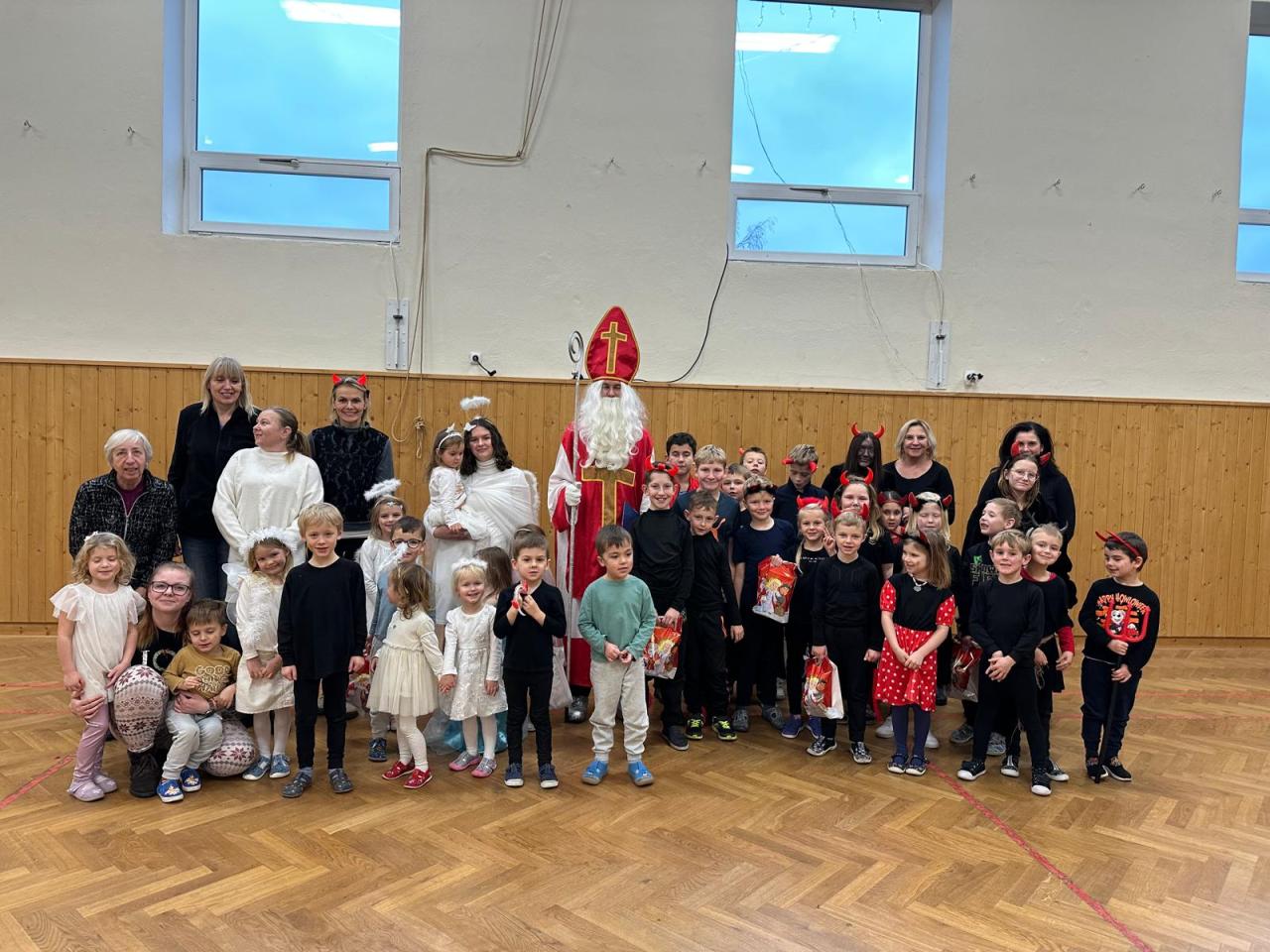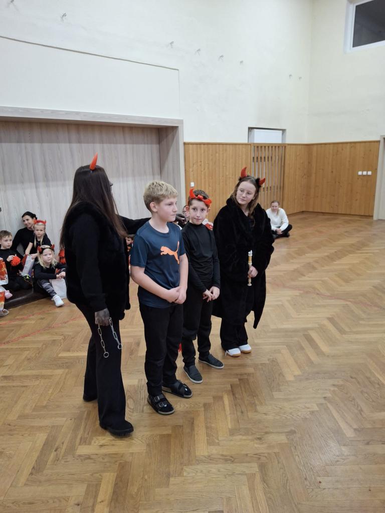 Dorazila totiž vzácná návštěva- Mikuláš se svými pomocníky- andělem a čertem. Přestože se děti možná trochu bály, trojice byla velmi přátelská. Mikuláš měl s sebou velkou knihu hříchů, ve které bylo napsáno ledacos, ale místo přísného napomínání dal dětem šanci se polepšit. Anděl opatroval a povzbuzoval a z čerta se nakonec vyklubal kamarádský rarášek. Páteční dopoledne se tak neslo v duchu radosti, tradic a společné prožitých zážitků, na které budou děti ještě dlouho vzpomínat.