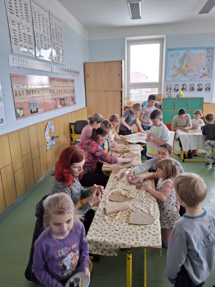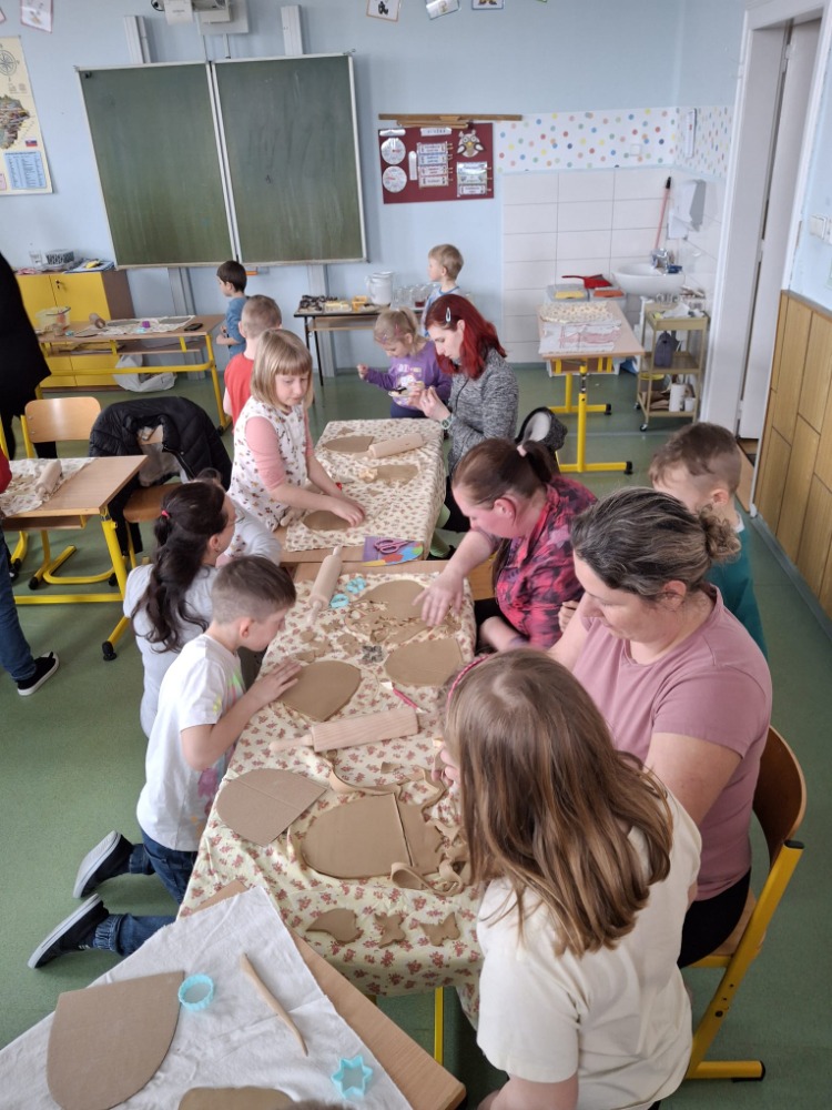 Svátky jara jsme si zpříjemnili společným tvůrčím odpolednem s rodiči. Pustili jsme se do práce s hlínou a vyráběli jsme krásné keramické tabulky na dům. Byl to čas plný tvoření, smíchu a vzájemné spolupráce.